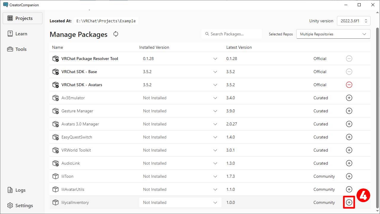 。lilycalInventory将被添加到VCC中。 - 安装完成后,点击