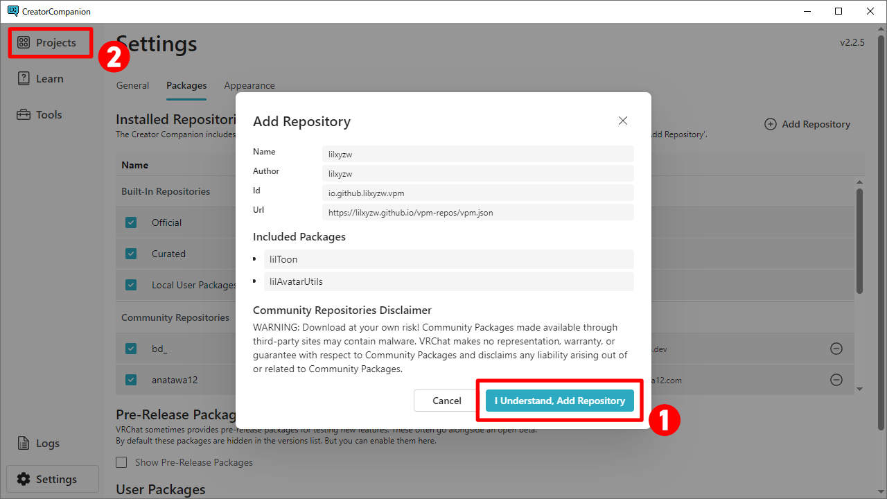 vrc-get repo add https://lilxyzw.github.io/vpm-repos/vpm.json